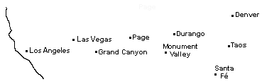 - Pela manhã o citytour o leva a descobrir a mistura de três culturas, da arte a arquitetura, motivo porque Santa Fe é chamada "City Different". Nos 375 anos de história da cidade, o Palácio do Governo já foi residência de espanhóis, índios, mexicanos e americanos. Hoje é o centro principal do colorido mercado indígena. À tarde saída para as montanhas em direção a Durango, onde poderá captar o espírito do Oeste Selvagem. Alojamento no hotel Days Inn Durango.